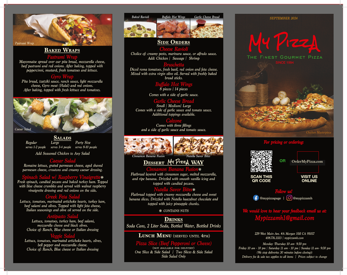 If you find yourself wandering the charming streets of Morgan Hill, make sure to stop by My Pizza, a delightful pizza restaurant that has quickly become a local favorite! Located at 229 W Main Ave #A, this establishment offers a warm and inviting atmosphere, perfect for grabbing a delicious bite with friends or family.