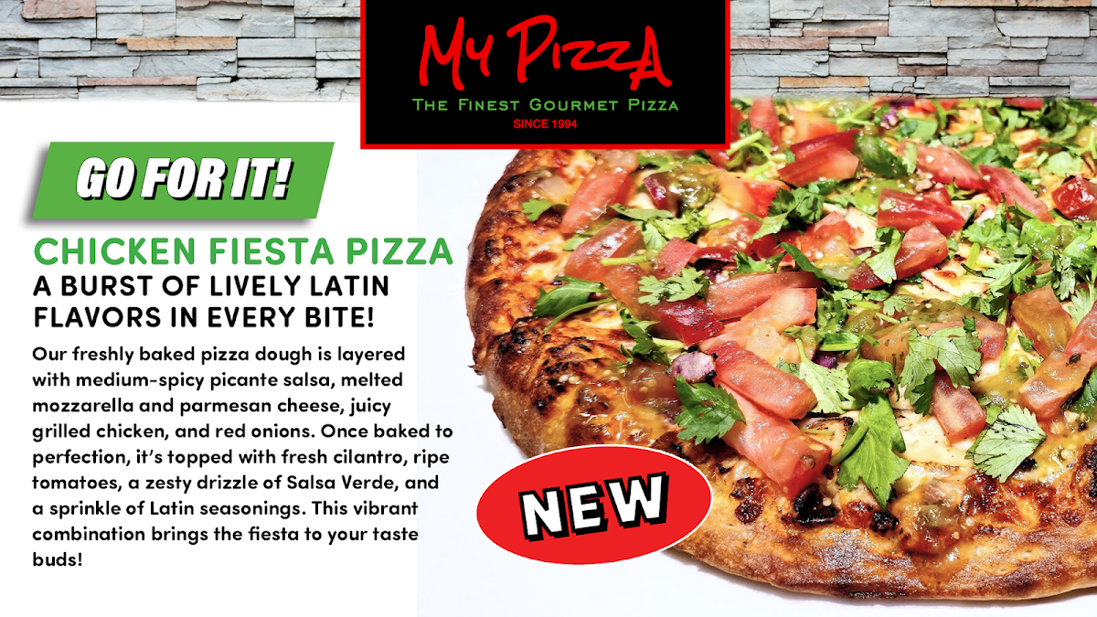 My Pizza specializes in crafting mouth-watering gourmet pizzas that will tantalize your taste buds. Their signature offerings include the Meat Gourmet Pizza, a heavenly combination of tomato sauce, mozzarella, pepperoni, turkey ham, sausage, mushrooms, onions, bell peppers, and olives. It's a feast for the senses, with a medley of flavors that meld perfectly in every slice.